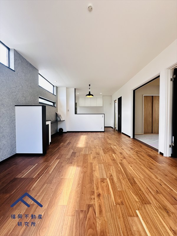 A 新築未入居なので内装は綺麗な状態です。キッチンから家事室と洗面所につながっているので家事が集約されて家事負担が軽減できます。玄関にはシューズクローゼット各部屋には収納が設けられており一つはウォークインクローゼットのため季節服や趣味道具等のかさばる収納にも困りません。