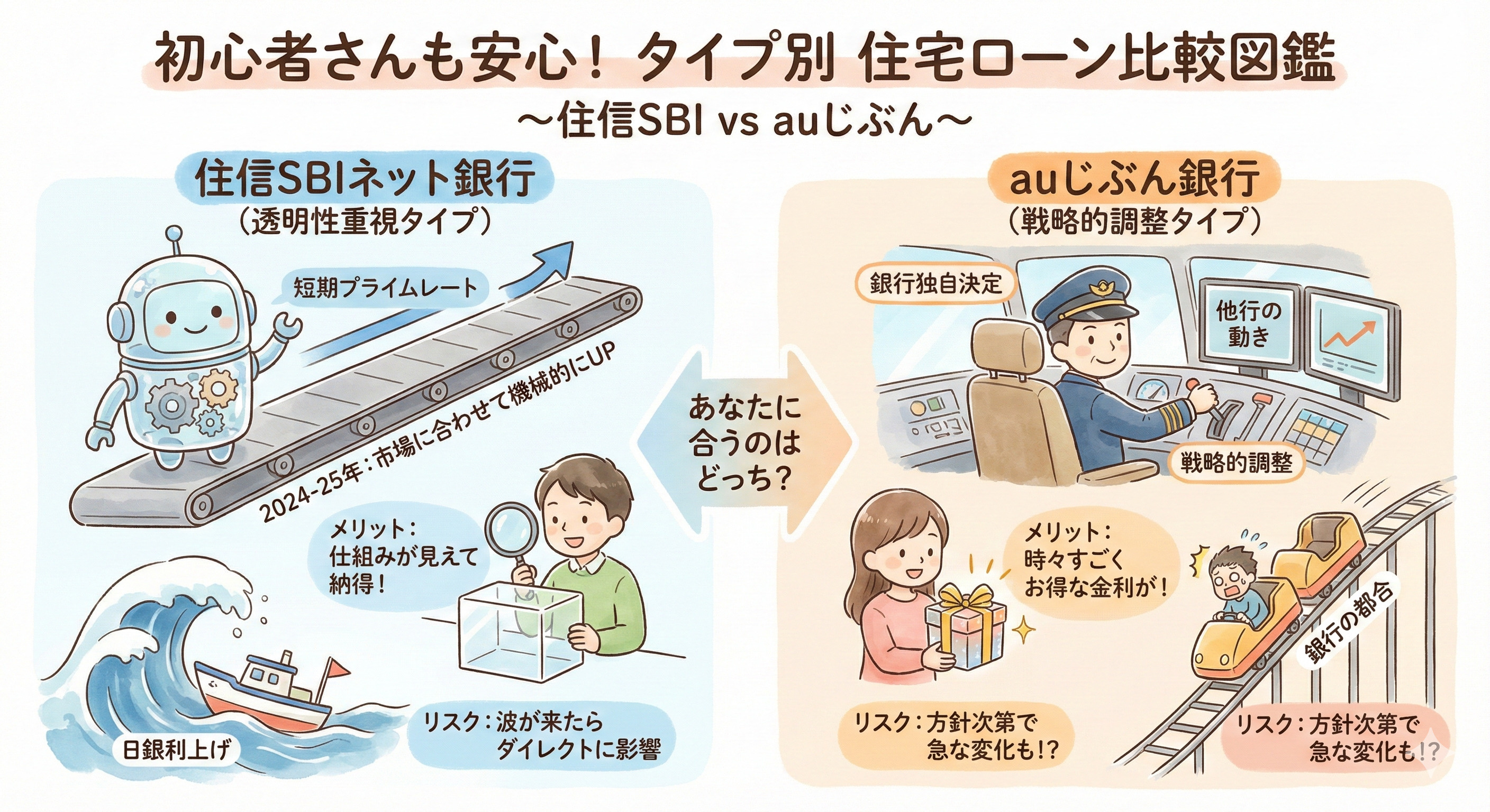 住信SBIとauじぶん銀行、金利上昇時の「銀行の対応」に差が出ています。 - 結論: